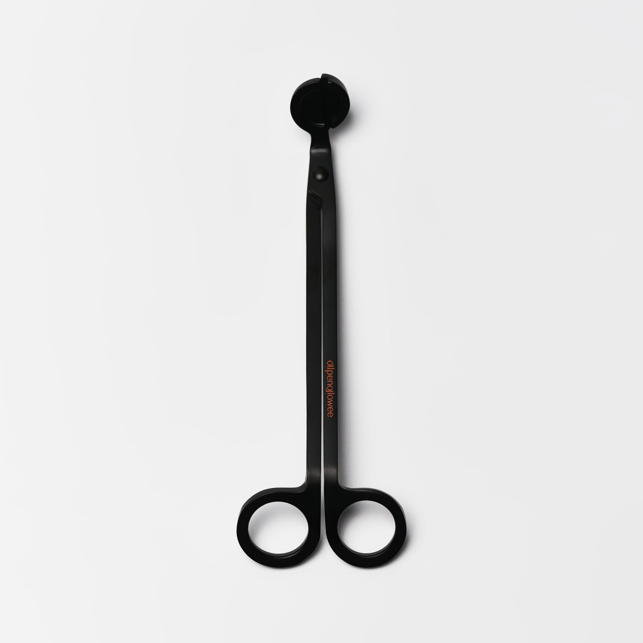 Candle trimmer with a sleek matte finish and an orange Alpenglowee logo. Trim your candle wick regularly to 5–7 mm to prevent excessive burning and extend the life and performance of your candles.
